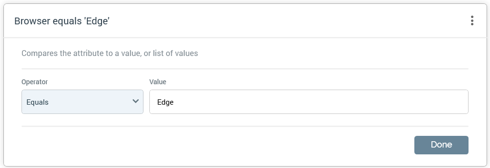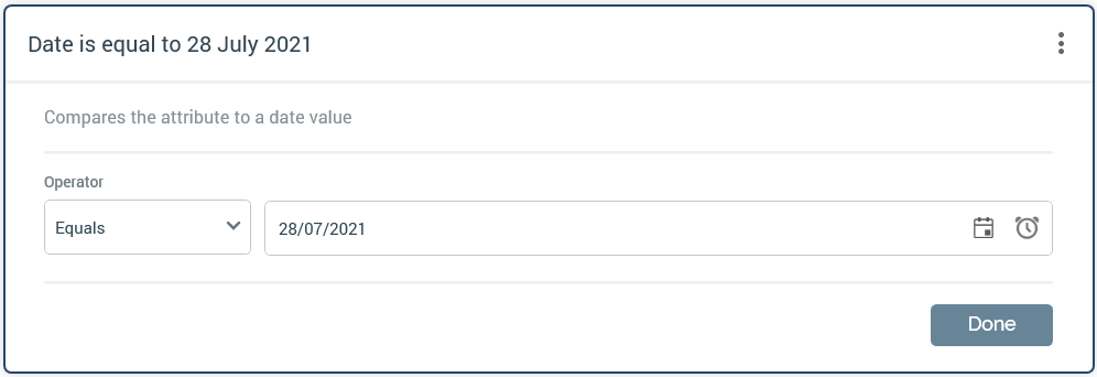 If ‘Equals’ or ‘Does not equal’, the following are shown: