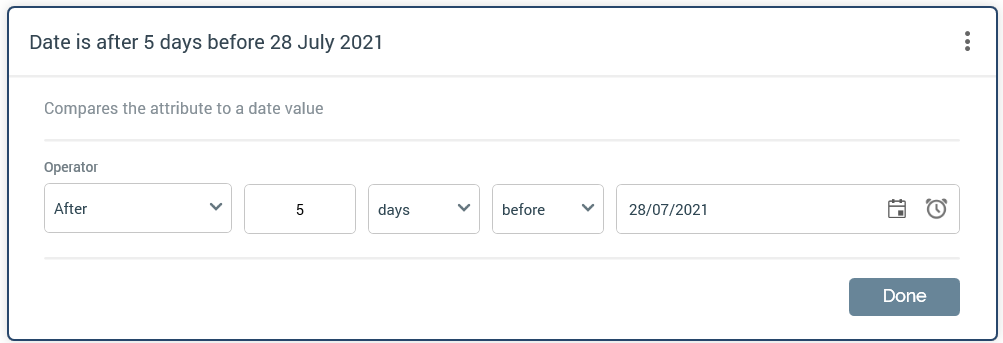 Operator: a dropdown field, the values exposed by which are data type-appropriate.