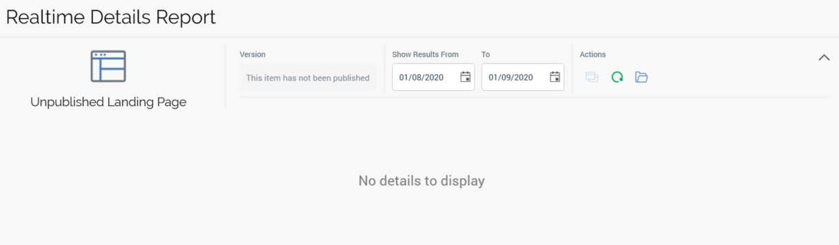 Links: this treeview node is only displayed when the currently-displayed landing page version contains one or more links. When it is selected, the following are shown to the right of the Realtime Details report: