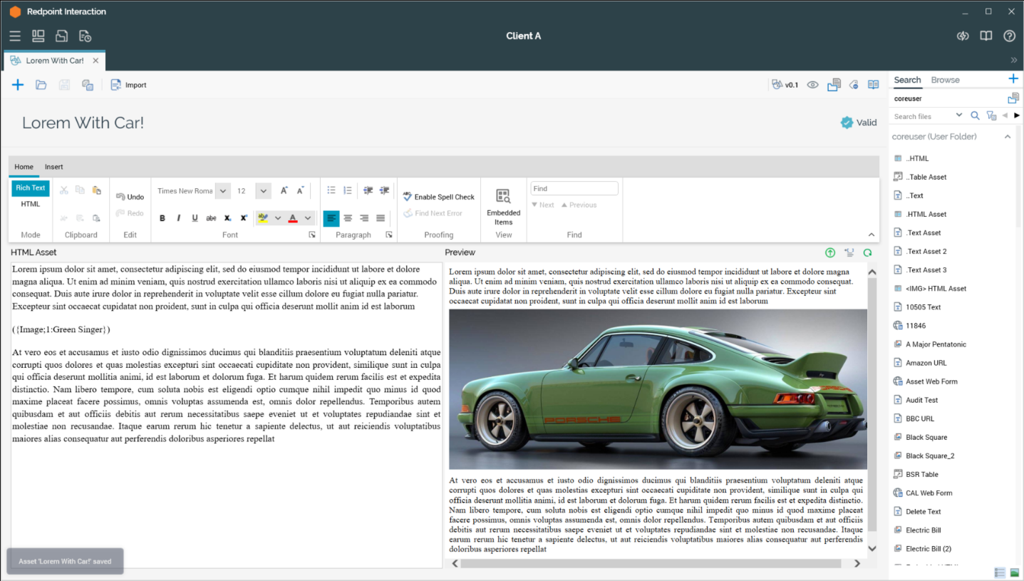 Save current Asset as...: allows you to specify the asset’s filename and storage location within the RPI file system by displaying the File System Dialog. Save as creates a new, independent asset based on the original.