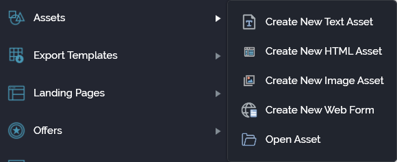 From the quick access menu’s Assets menu. The menu exposes the following options: