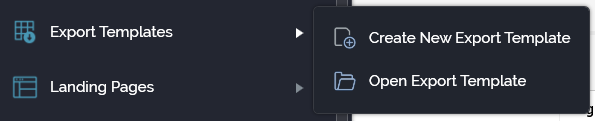 From the quick access menu’s Export Templates menu. The menu exposes the following options: