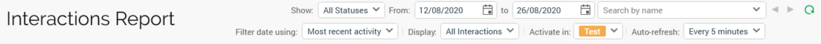 Activate in: this property allows you to define the mode in which interaction workflows initiated from the Interactions Report will be activated. By default, it is set to Test mode; you can choose to activate in Production mode, should you desire.