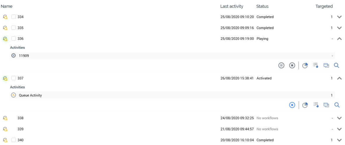 If an interaction contains more than one workflow, activities from all of its workflows are displayed in a flattened list.