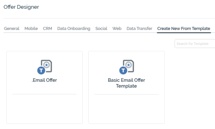 Create New From Template tab: lists any offer templates configured at the current RPI client: