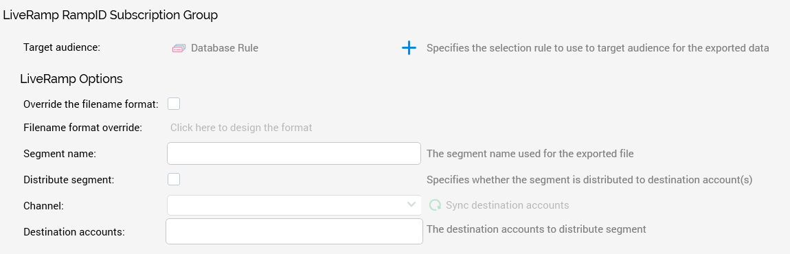 This section contains the properties that are specific to subscription groups that support the LiveRamp RampID channel provider.