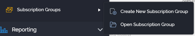 From the quick access menu’s Subscription Groups menu. The menu exposes the following options: