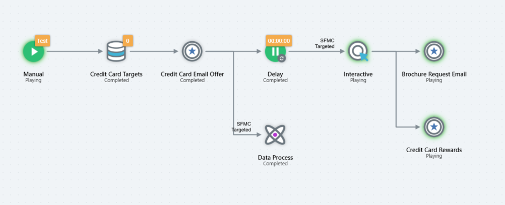 All activities are read-only in the Workflow Instance Viewer. You may view activities’ configuration panels, but you may not make changes. You may invoke certain functionality (see below for details). You can navigate to a selection rule associated with a trigger criterion or a channel. You can also move activities in the workspace.
