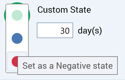 Positive/Negative/Transitional state icon: on hovering over the icon, a menu is displayed, allowing you to change the property: