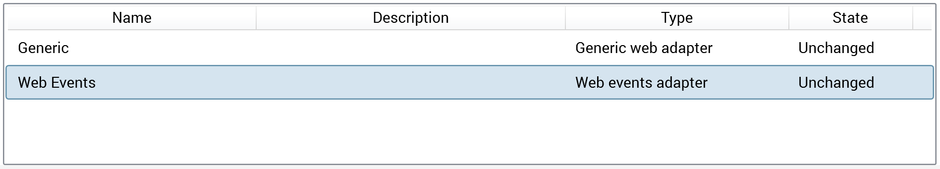 A single Web Events adapter – ‘Default web tracker’ is provided out-of-the-box at a newly-installed RPI client.