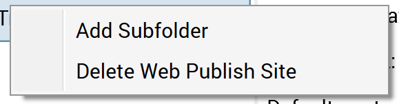 Add subfolder: invocation of this option adds 'New folder' below the web publish site. Name uniqueness is ensured by the addition of an incrementing integer if a sibling folder with the same name already exists.