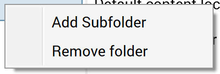 Add subfolder: invocation of this option adds 'New folder' below the current folder. Name uniqueness is ensured by the addition of an incrementing integer if a sibling folder with the same name already exists.