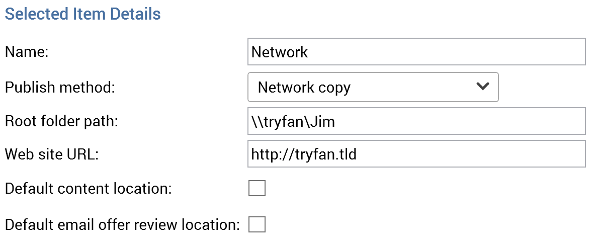 If a network folder web publish site is selected, the following properties are displayed:
