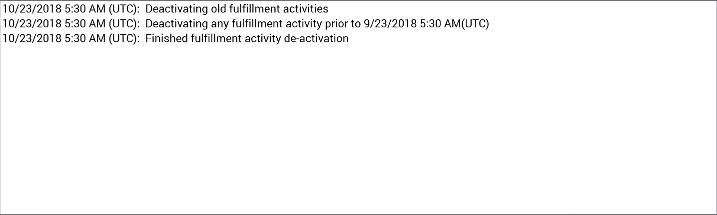 Fulfillment activity housekeeper: ceases fulfillment activities’ monitoring for fulfillment state changes after 30 days. Also requests that channels clean up any external provider-supplied entities (e.g. SFMC email send definitions, which are deleted in accordance with a channel’s No. of days fulfillment active property).