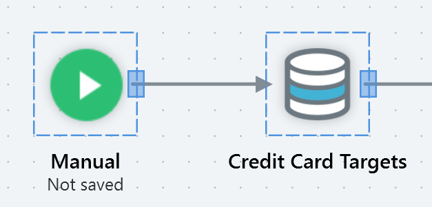 When you select an existing activity in the workspace, a connection point (a blue rectangle) is displayed to its right: