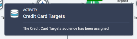 Your choice made, an activity of the appropriate type is added to the workspace and configured automatically with the selected audience. The name of the new audience activity is the same as the audience you dragged (if an identically-named activity exists already, an integer is appended to the name to ensure uniqueness (and can be incremented if required)).