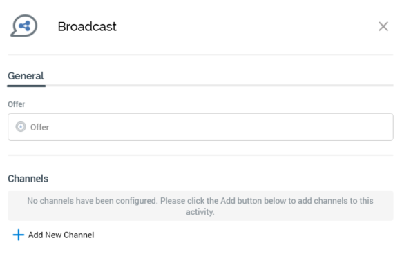 Offer: selection of an offer to associate with the broadcast is optional, if none of its defined channels require one. For example, if the broadcast is configured with a single above-the-line (ATL) channel, provision of an offer for the broadcast is not required. Note that you are at liberty to add ATL channels to the broadcast as required.