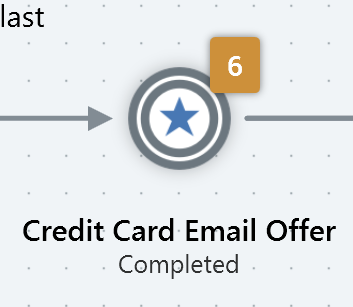 Results bubbles are displayed at audiences, exports, offers, decision offers, controls, subscription groups and queue activities to indicate that results exist in a given context: