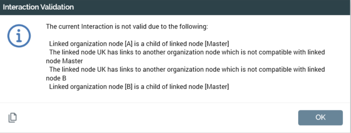 If the determination of an interaction’s validation status takes longer than three seconds, dynamic validation is switched off automatically. A button is displayed, and advises of this fact. Clicking the button re-enables dynamic validation.