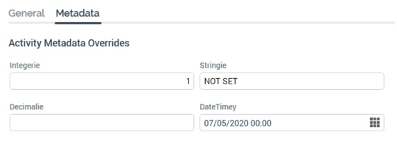 Activity Metadata Overrides: this section lists the metadata attributes defined at the currently-selected Audience definition. You can override values and revert to the defaults provided as required. Metadata values are written to a mode-specific Offer History Meta table on parent queue listener activation (one record per queue activity). If a queue listener is de-and re-activated, persisted metadata values are updated to reflect current values at the point of activation.