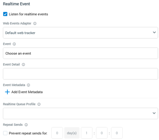 Listen for Realtime events: this checkbox is unchecked by default. When checked, the properties below it are shown.