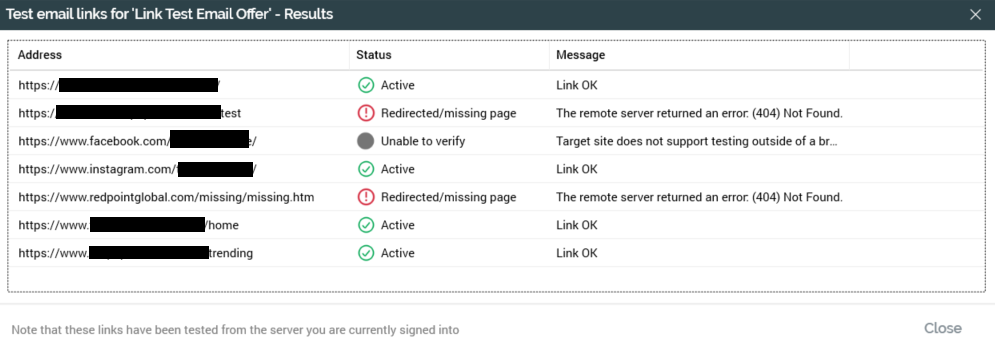 Following the job’s completion its status is set to Completed, and a View Results button is shown. Clicking the button displays the Channel Validation Results dialog, which details the nature of any issues that occurred during the job’s execution.