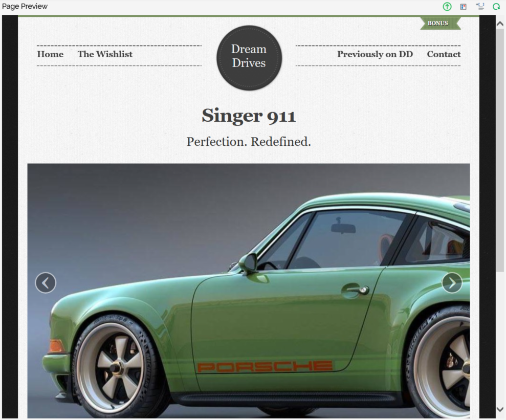 It displays a read-only preview of content across all cells in the landing page. Any stylesheets (as defined in the HTML property or at web forms) are applied to give an impression of final rendered content. Any smart assets included in landing page content are rendered using default content (if default content is not provided, no content is shown).