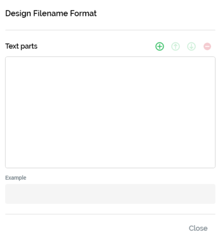 Example: a read-only field that displays an example of the export path or filename format. String values are displayed as entered. Date part values displayed in accordance with dropdown setting and show the current date and time. Other text parts are displayed as e.g. '[Interaction]'. The example’s maximum length is 100 characters. The example is also displayed at the invoking button.