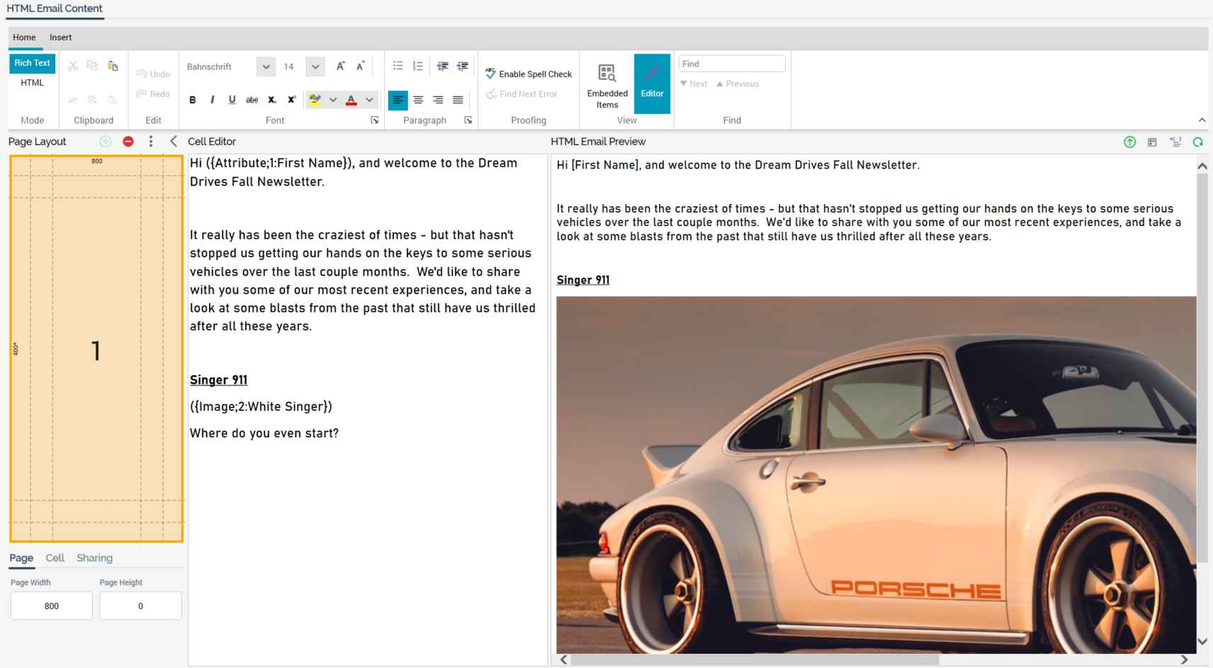 The Email content panel contains the following sections: