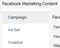 The Campaign tab is used to set the Facebook ad’s objective and campaign. It contains the following: