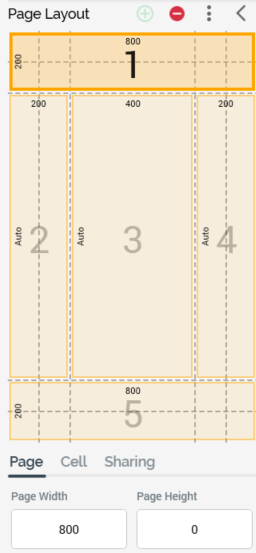 Add a new cell: this button is only available when a Pre-built page layout is selected. Clicking it adds a new cell to the page layout panel, at the first available empty position as defined by the rows/columns grid. The new cell occupies one grid cell only. The option is enabled when one or more available empty positions exist. Available positions are populated from the top left, then across the row.