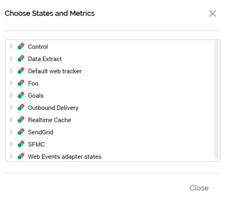 Clicking the property displays the Choose States and Metrics dialog.