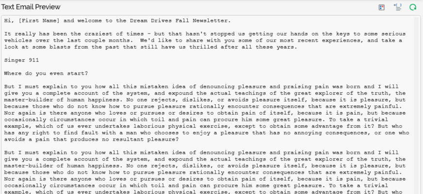 The text content editor allows you to edit an email’s text content. It is described in its own section within the RPI documentation.