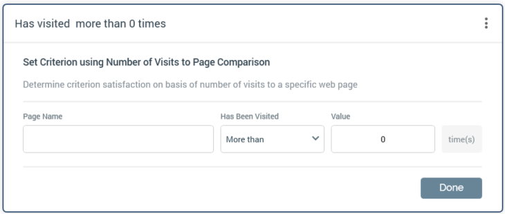 The Number of visits to page decision criterion type is specialized. On creation of such a decision criterion, it is displayed thus:
