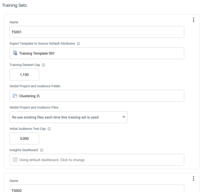 Name: this mandatory text property can be a maximum of 100 characters in length. All training sets within the current audience definition must have unique names.