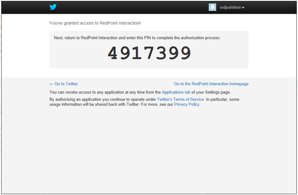 When a PIN has been generated, a PIN field is displayed. You can paste the PIN that you copied to the clipboard, and then click the accompanying Submit PIN button. If the PIN is accepted, the Twitter channel is authorized. If the PIN is rejected, a warning message is shown.